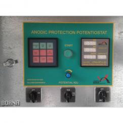 به منظور حفاظت آندی یک سازه، از دستگاهی به نام پتانسیواستات استفاده میشود. پتانسیواستات وسیلهای الکترونیکی است که میتواند فلز را در پتانسیلی ثابت نسبت به الکترود مرجع نگه دارد. پتانسیواستات سه خروجی دارد که یکی به سازه، دیگری به کاتد و سومی به الکترود مرجع متصل میشود. در عمل، پتانسیواستات بر مبنای تغییرات پتانسیل بین سازه و الکترود مرجع و تغییر جریان تزریقی، یک پتانسیل ثابت را بین سازه و الکترود مرجع حفظ میکند. پتانسیل بهینه برای حفاظت توسط اندازهگیریهای الکتروشیمیایی تعیین میگردد.