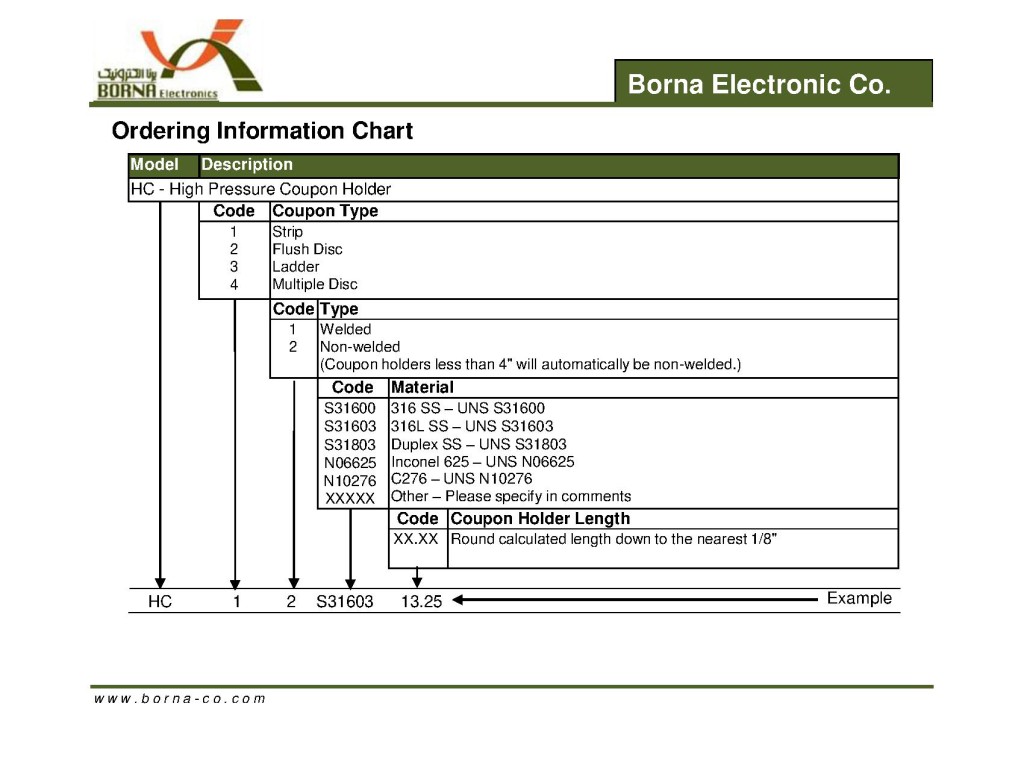 Coupon holders produced by Borna Electronics Co. are typically made of 316 or 316L stainless steel, manufactured in accordance with international standards such as ASTM A276 and ANSI/NACE MR0175/ISO 15156 (Relevant to sour environments), and they can also be customized based on customer requirements. In environments with extremely severe corrosive conditions, materials with higher corrosion resistance, such as Duplex stainless steel, Nitronic, Inconel 625 and …, can be used.